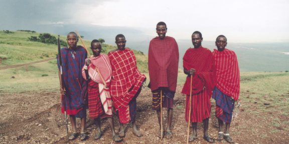 Odtud jsme pokračovali do Simba kempu. Opět jsme potkávali cestou masaje s jejich dobytkem v krásném kopcovitém parku Ngorongoro. U výhledu do kráteru jsem si vyfotila skupinku masajů. Dala jsem jim nějaké drobné, ale ne každému. Tolik jsem jich zas neměla. Jsou jako kobylky, tak jsme raději svižně odjeli.