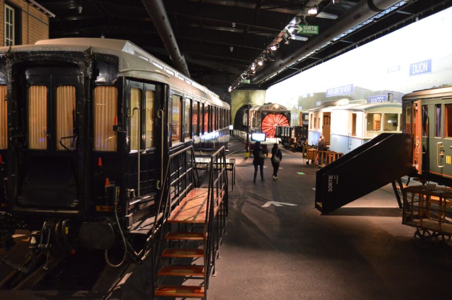 A co konkrétně muzeum nabízí? V první hale jsou vlakové soupravy rozděleny tématicky. Na jednom nástupišti se právě chystá k odjezdu vlak, mířící na prázdniny. Vzápětí se ocitneme na horách a sledujeme speciálně upravenou lokomotivu, prohrnující zasněženou trať. Válečnou kapitolu připomene vykolejená souprava, která se stala obětí francouzských odbojářů. Lesk interiéru jídelního vozu kontrastuje se strohou výbavou vagónu pro cestující druhou třídou. To vše doplněno zvukovými a světelnými efekty, jež dotvářejí atmosféru dané situace.