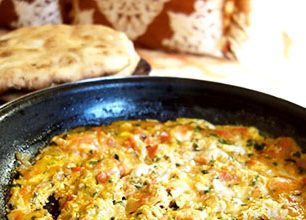 Přejít do galeriePoté přidáme vejce, osolíme, promícháme pouze lehce, vejce spíš zůstane na povrchu, přiklopíme a doděláme na mírném plameni. Jakmile vejce ztuhne, je hotovo. Chvíli před koncem můžeme navrch naházet pár oliv a naložených citrónů. Podáváme s marockým chlebem (khobz) a nabíráme na chleba všichni z jedné pánve, která je umístěna uprostřed stolu.