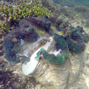 Na nás z celého ostrova nejvíc zapůsobila Giant Clam Sanctuary. Pravda, dostat se k ní není jednoduché, protože cesta k ní není dobře značená, ale s pomocí chytrých telefonů a místních jsme to nakonec po pár špatných odbočeních našli. Pokud jde o ochranu životního prostředí, mají Filipínci hodně co dohánět a bylo fajn vidět, že někde už se místní snaží přírodu chránit. Prováděl nás mladý sympaťák. Na pláži nám ukázal nádrže, kde chovají malé zhruba 10cm zévičky, které, když dorostou do příslušné velikosti, přesunou do podmořské zahrádky. Obyvatelé Camiguinu dle informací největšího žijícího mlže málem všechen snědli a podařilo se ho zachránit na poslední chvíli. I sám průvodce zévu jako dítě párkrát jedl, ale prý to žádná velká delikatesa není. Po exkurzi na pláži následuje zhruba hodinová podmořská prohlídka, při které máme možnost obdivovat kromě desítek zév úhledně zarovnaných do řad korálové útesy a nechybí ani sasanky se svým kultovním obyvatelem Nemem. Prohlídka i s půjčením šnorchlu vyjde 180PHP/osobu a zabere okolo dvou hodin.