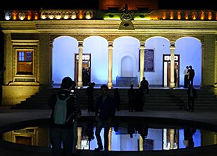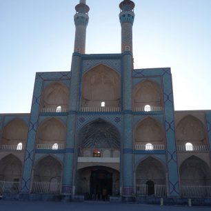 Večer ještě navštěvujeme chrám Ateškade se sloupovitým průčelím, nad nímž se rozpíná okřídlený zoroastrijský bůh, je nasvícený a zrcadlí se v jezírku před ním. V chrámu vládne ticho a důstojná atmosféra, za sklem plápolá oheň, který zde udržují snad více než 1500 let. K chrámu přiléhá menší muzeum vyprávějící o principech a tradicích zoroastrijské víry. Někteří věřící se s námi dávají do řeči a odpovídají na naše otázky.